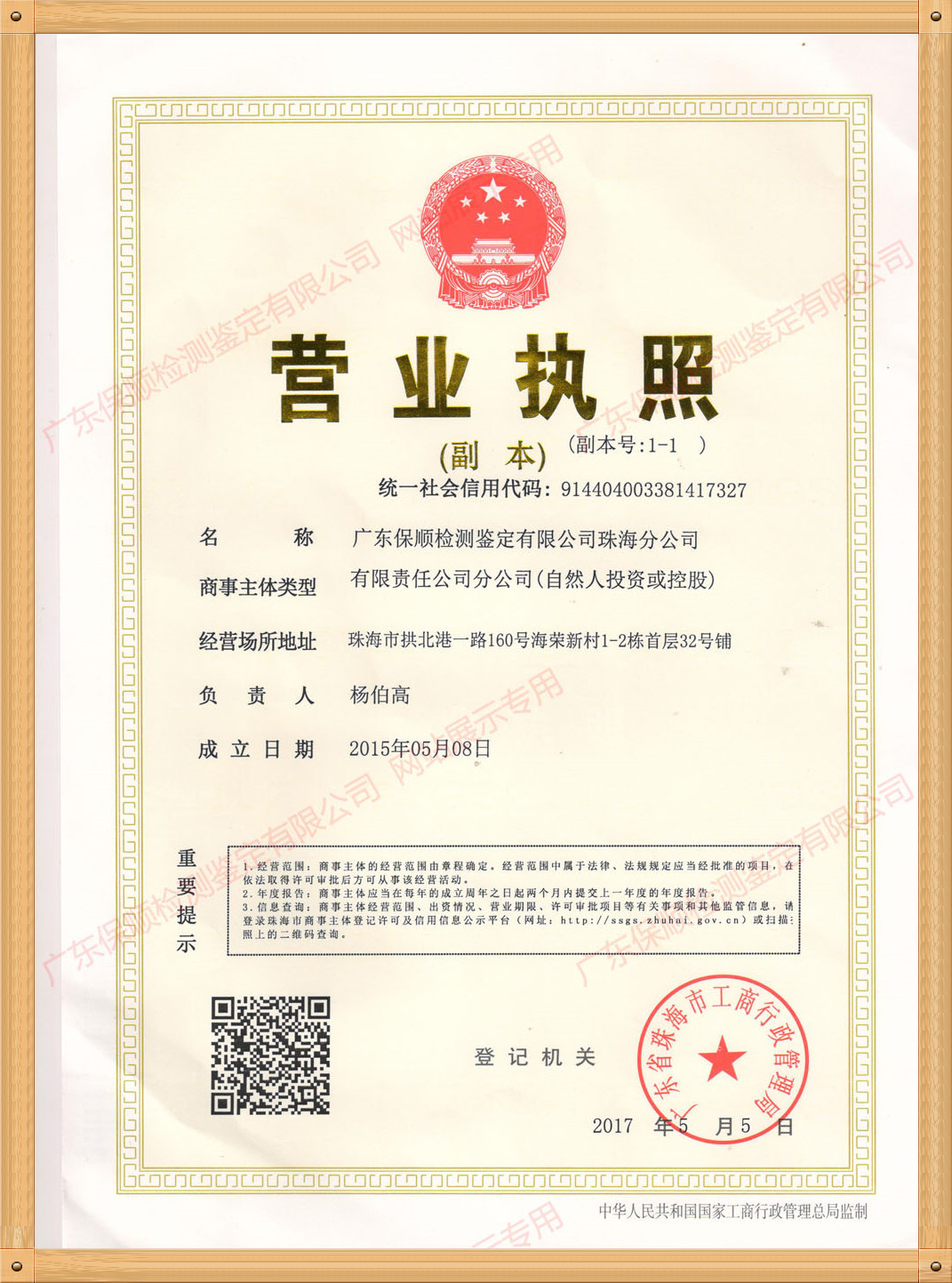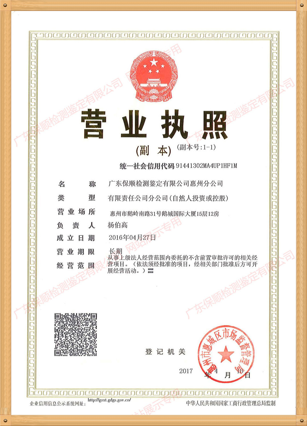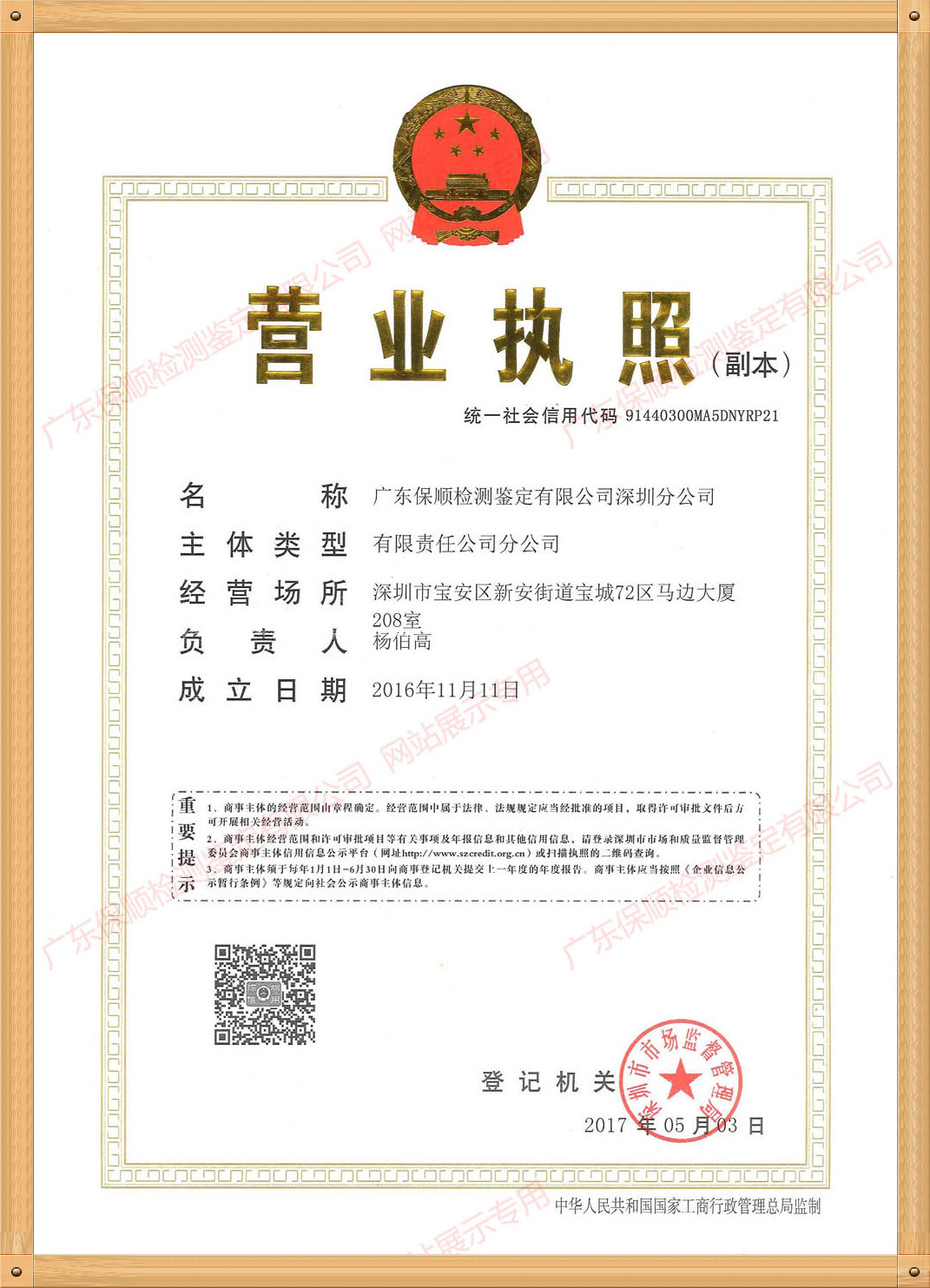 - 總公司:廣東保順檢測鑒定有限公司(下轄分公司93家)