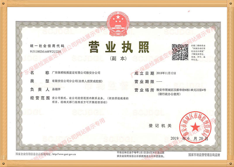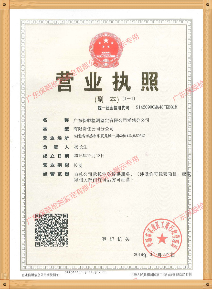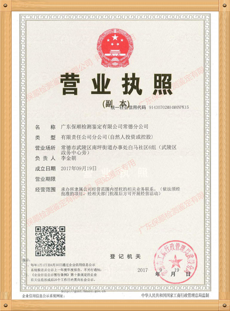 - 總公司:廣東保順檢測鑒定有限公司(下轄分公司93家)