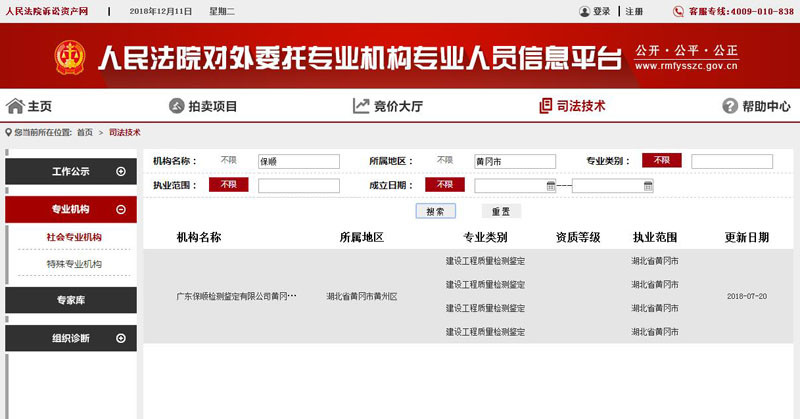 根據最高人民法院《對外委托鑒定、評估、拍賣等工作管理規定》(法辦發[2007]5號)的相關規定,現決定公告自愿報名,經省高、中級法院審核通過的司法委托鑒定機構名單,自2018年1月1日起啟用,廣東保順檢測鑒定有限公司作為全省各級人民法院司法委托鑒定的備選機構。