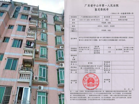 由中山市第一人民法院審理的原告李**、劉*與被告劉**、劉**、李**財產損害賠償糾紛一案,因案情需要,受中山市第一人民法院的委托,廣東保順檢測鑒定有限公司對中山市恒基花園*棟是否漏水以及漏水部位的原因進行鑒定。