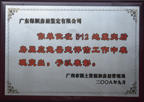 廣東保順檢測鑒定有限公司-512援川抗震特殊榮譽