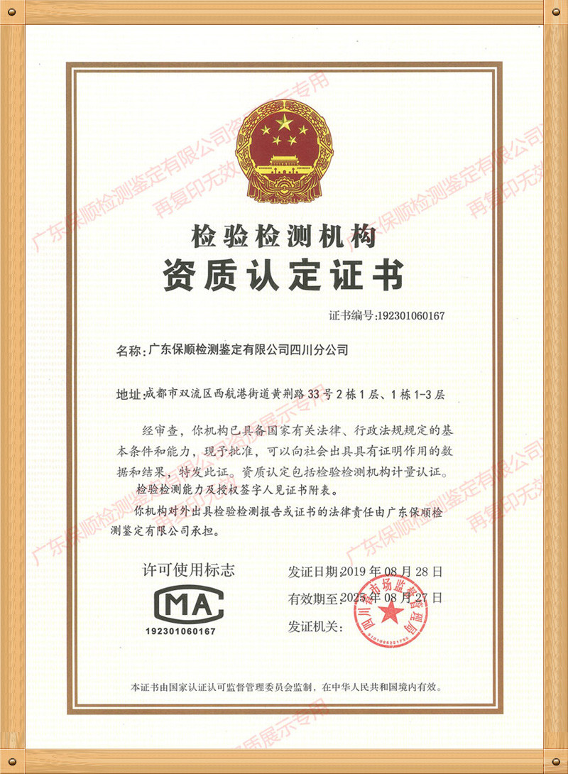 四川分公司CMA檢驗檢測機構(gòu)資質(zhì)認(rèn)定證書